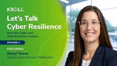 In this series, we chat with cybersecurity and data resilience leaders from Kroll and our partners. Our second guest is Denyl Green, Managing Director in the Cyber Risk business, based in Portland. Future episodes will cover topics such as the Cyber Threat Landscape, AI Risk Governance, and Breach Notification.