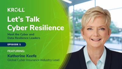 In this series, we chat with cybersecurity and data resilience leaders from Kroll and our partners. Our first guest is Katherine Keefe, Managing Director and Global Cyber Insurance Lead. Future episodes will cover topics such as the Cyber Threat Landscape, AI Risk Governance, and Breach Notification.