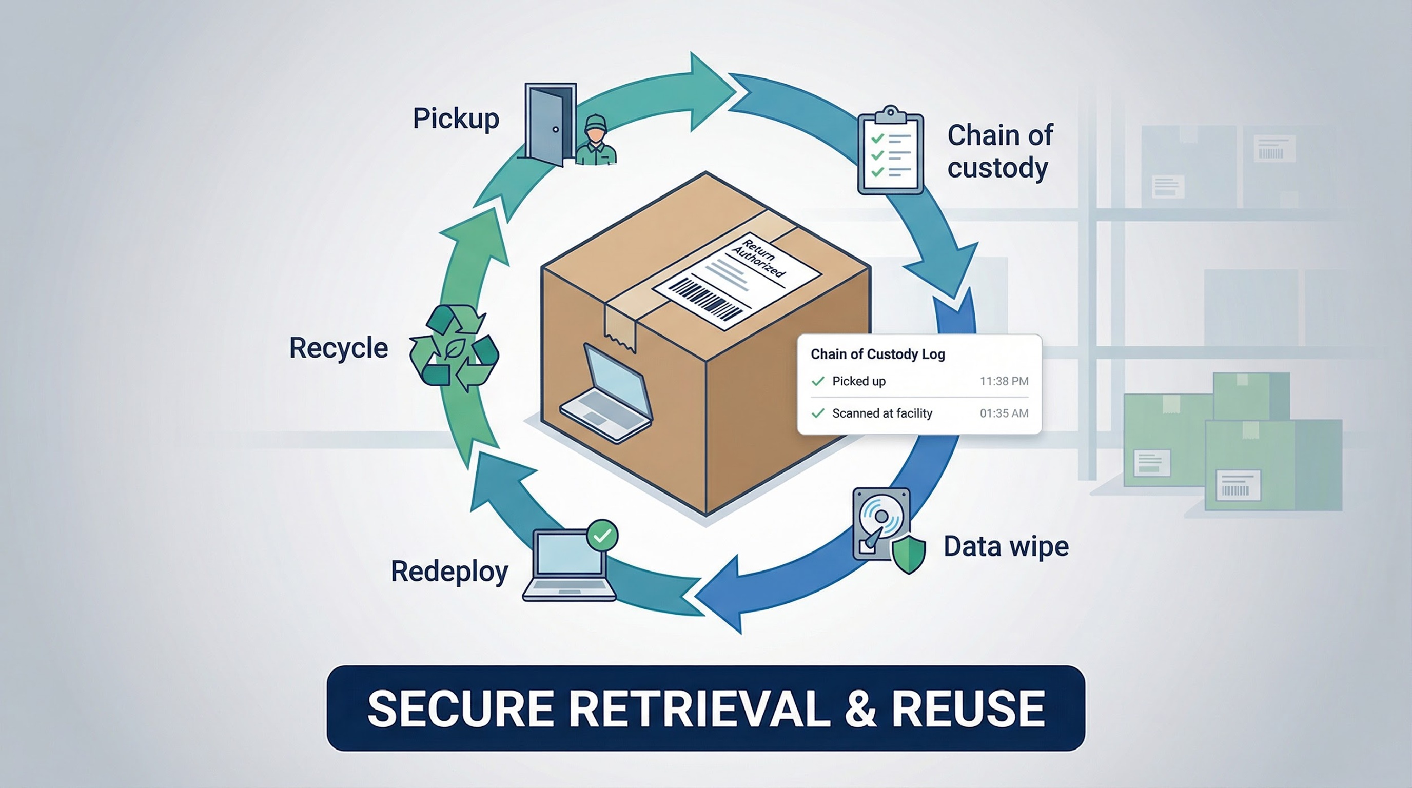 Fourth, what happens when an employee leaves? Secure pickup, chain-of-custody tracking, and certified data wipes protect budgets and brand reputation.